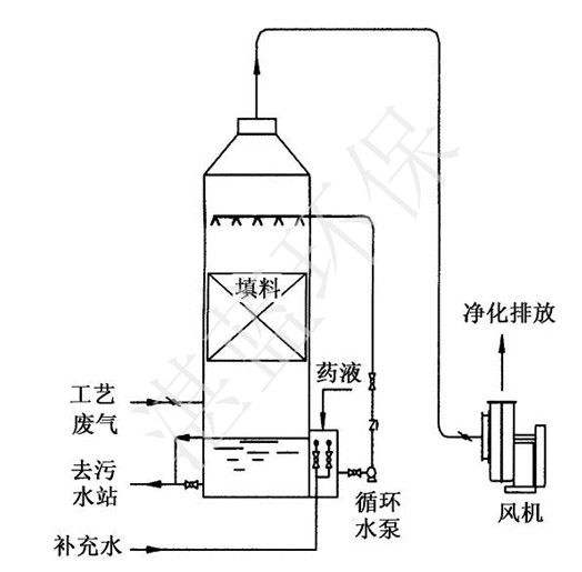 噴霧塔,又稱噴淋塔。塔內無填料或塔板,但卻設置有噴嘴的吸收塔。液體由塔頂進入,經(jīng)過噴嘴被噴成霧狀或雨滴狀;氣體由塔下部進入,與霧狀或雨滴狀的液體密切接觸進行傳質.使氣體中易溶組分被吸收。結構簡單,不易被堵塞,阻力小,操作維修方便。